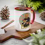 This custom two-tone mug is here to accommodate all your favorite pick-me-up elixirs in style. Its durable ceramic build is microwave & dishwasher safe, as is any printing that goes on to these mugs. It holds 15oz and comes in three different color schemes: white with red interior, white with pink interior, and white with black interior.